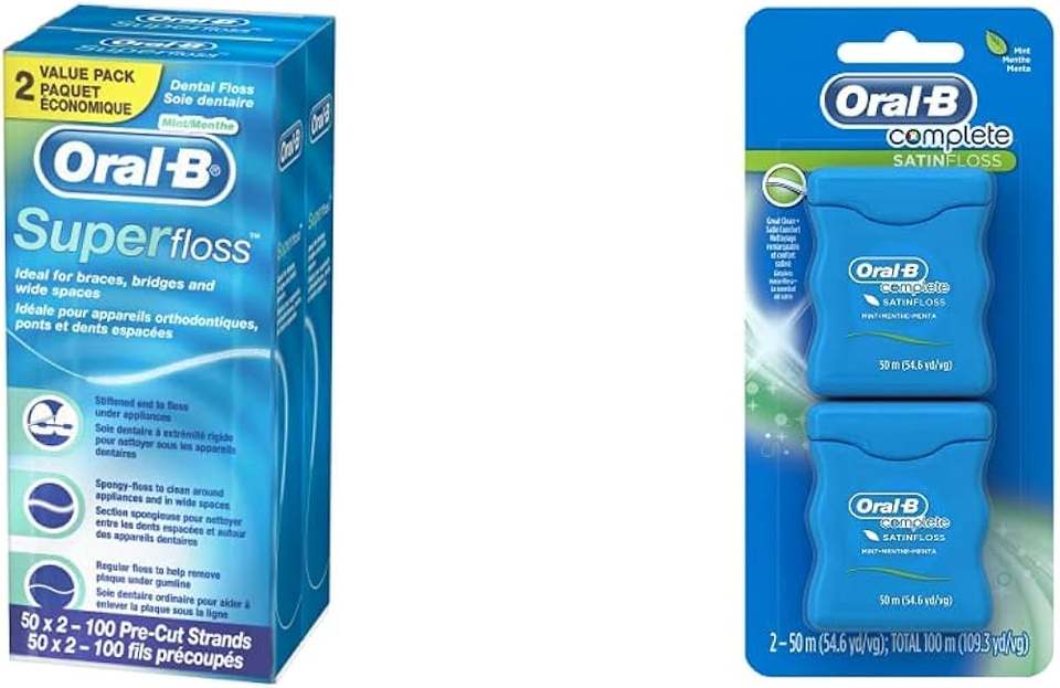 Hilo Dental Oral-B Super Floss para Brackets y Ortodoncia | 100 hebras en total | 2 Cajas de 50 Piezas | Material de PE | Hecho en Austria