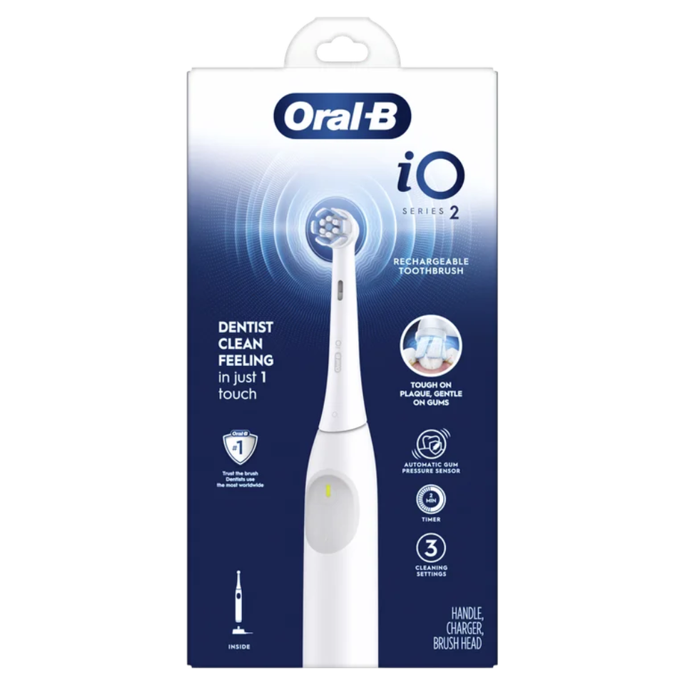 Oral-B iO Serie 2 Cepillo de dientes eléctrico recargable Blanco Cabezal de cepillo suave Sensor de presión 3 modos 2 Min Temporizador USB Hogar