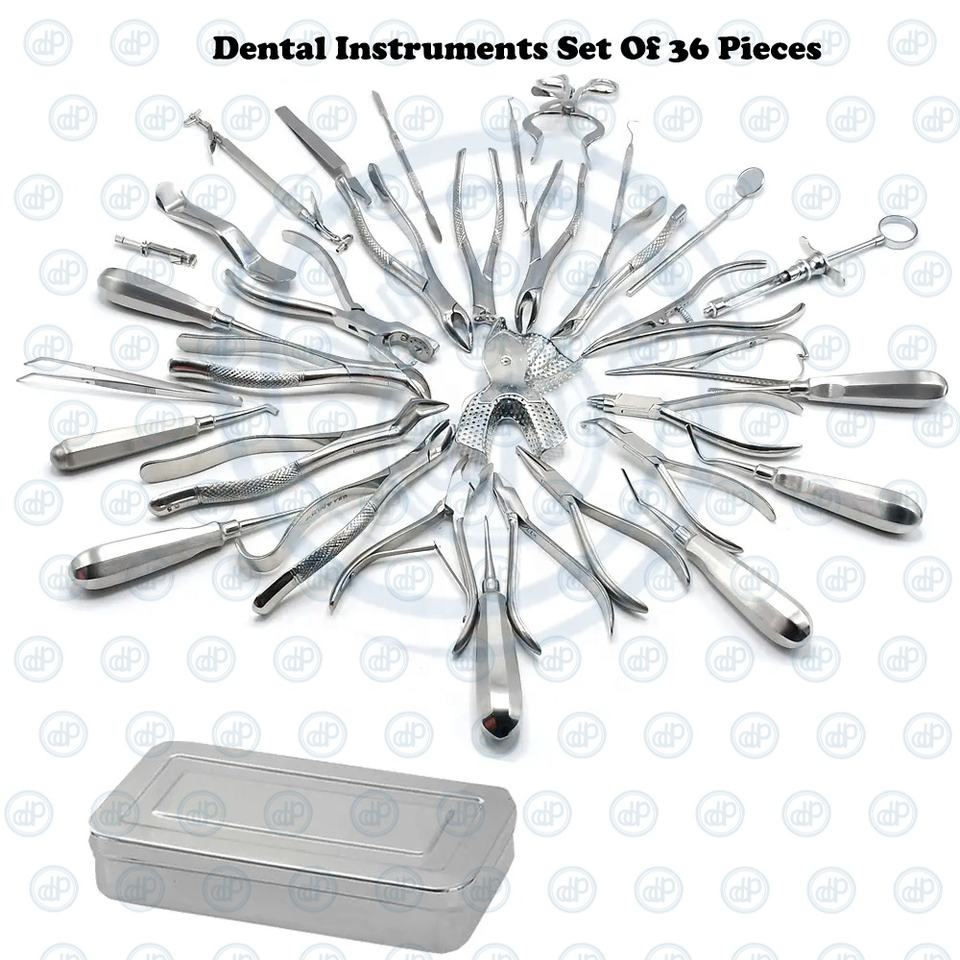 Juego de Instrumentos Dentales de Ortodoncia Oral de 36 Piezas, Juego de Fórceps de Acero Inoxidable, Instrumentos Quirúrgicos para Dientes