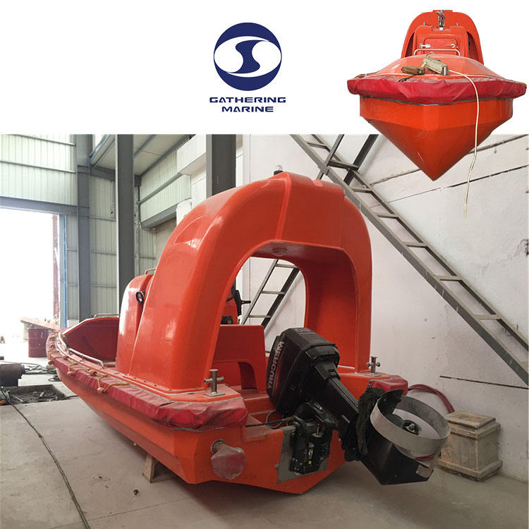 Bote Salvavidas de Rescate de Alta Velocidad SOLAS Naranja de 60HP con Grúa de Brazo Único Giratorio de Fibra de Vidrio para 6-15 Personas, 6 Metros