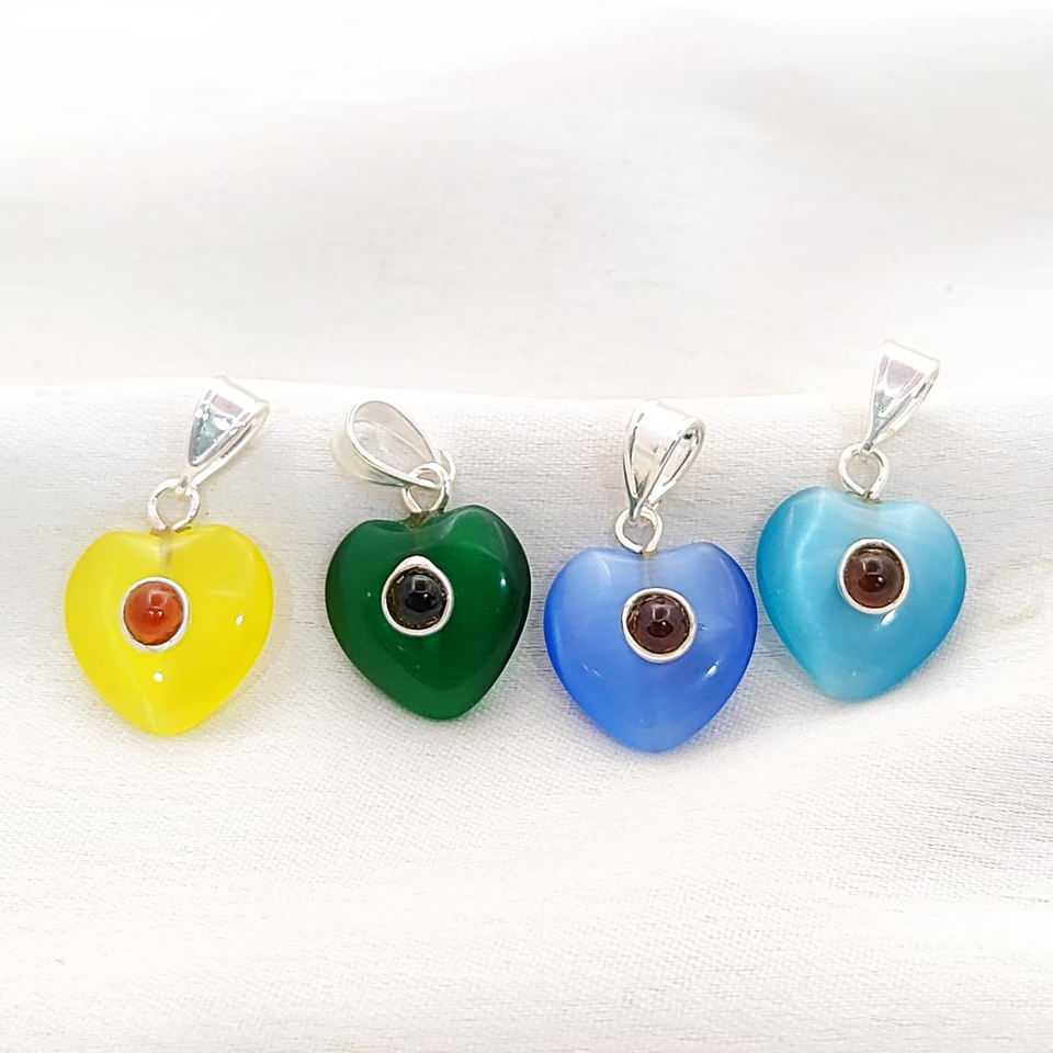 Nombre del Producto:Colgante de corazón Monalisa con ojo de gato y piedras preciosas
