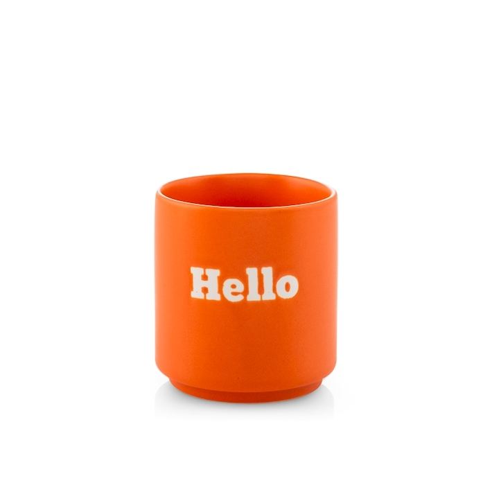 Taza de Cerámica Naranja 200Cc con Escritura 'Hello'