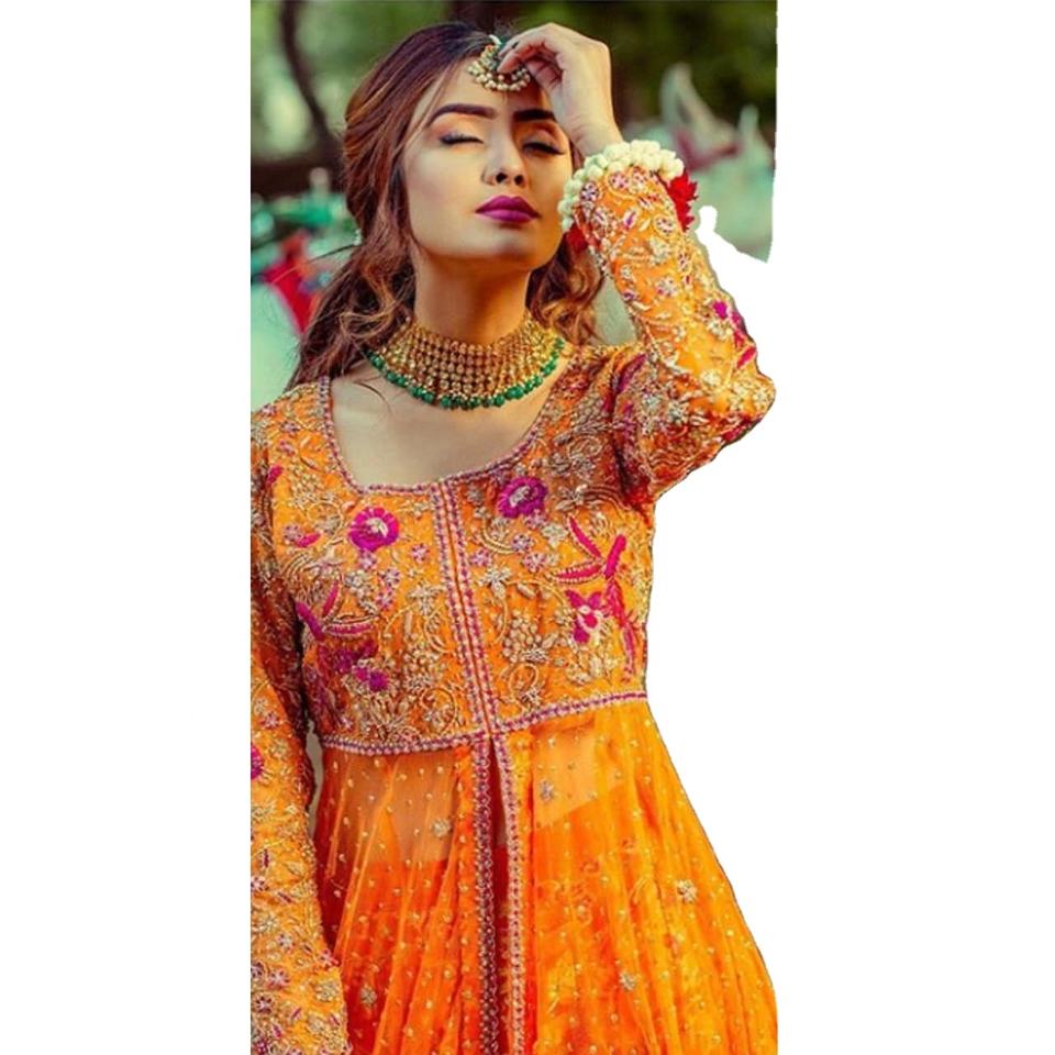 Vestido de fiesta de seda para mujer, de 3 piezas traje de seda, de color naranja, Lehenga Choli