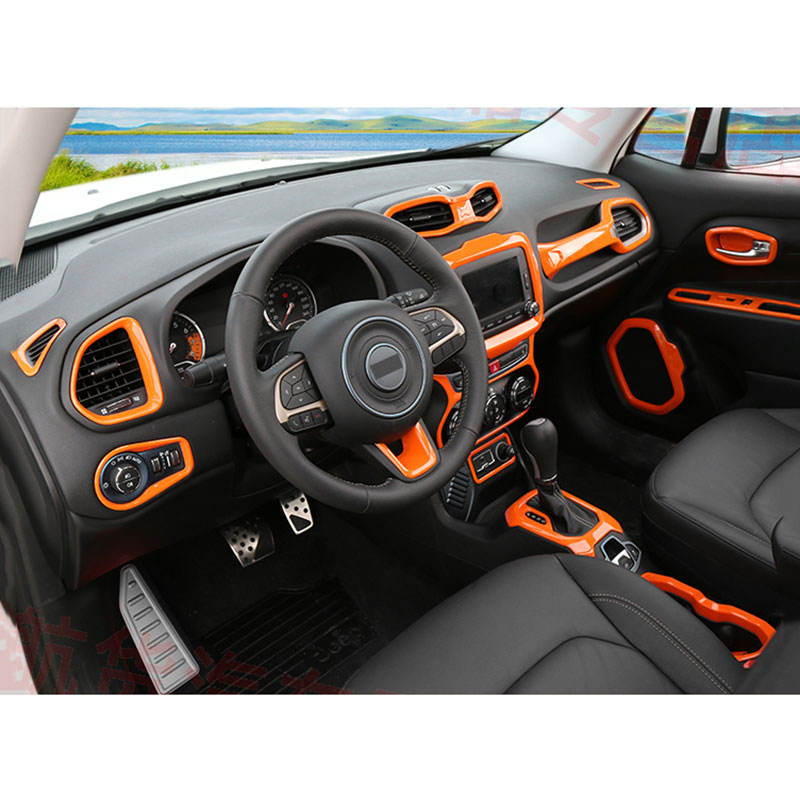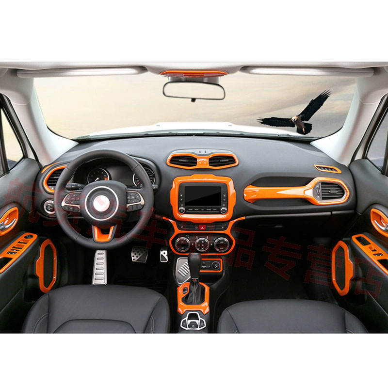 Accesorios Interiores para Automóvil Color Naranja para Jeep Renegade 2016-2021, Panel de Cambios, Perilla de Cambio, Ajuste del Asiento, Cubierta del Volante
