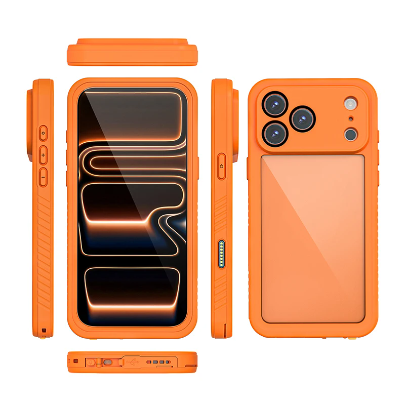 Funda para Teléfono iPhone 17 Pro/17 ProMax, Color Naranja, Moderna, Popular, Duradera, Transparente, Antideslizante, Impermeable IP68