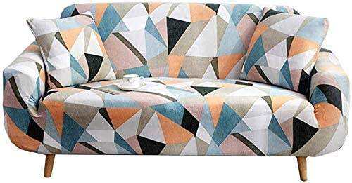 Fundas de sofá elásticas lavables de tela de poliéster de 4 asientos con patrón geométrico naranja