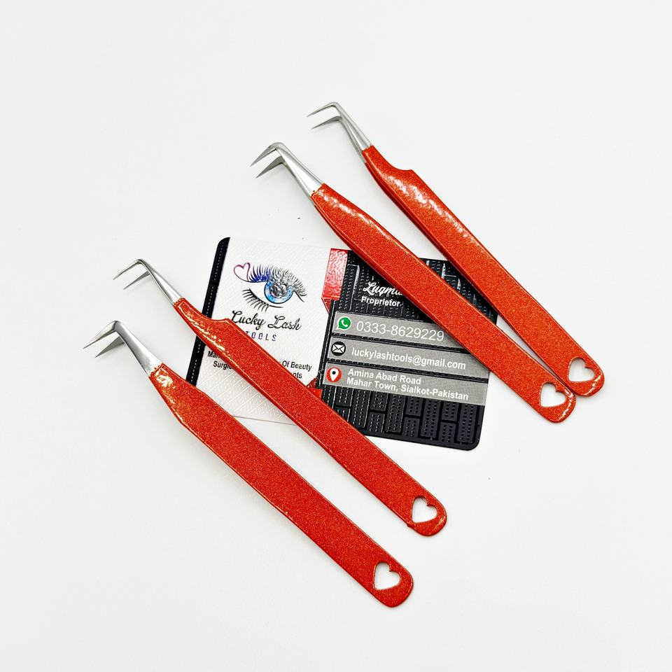 Juego de pinzas para pestañas personalizadas con corazón de purpurina naranja 90 45 grados aislamiento de volumen sostenible pinzas para pestañas de acero inoxidable alto