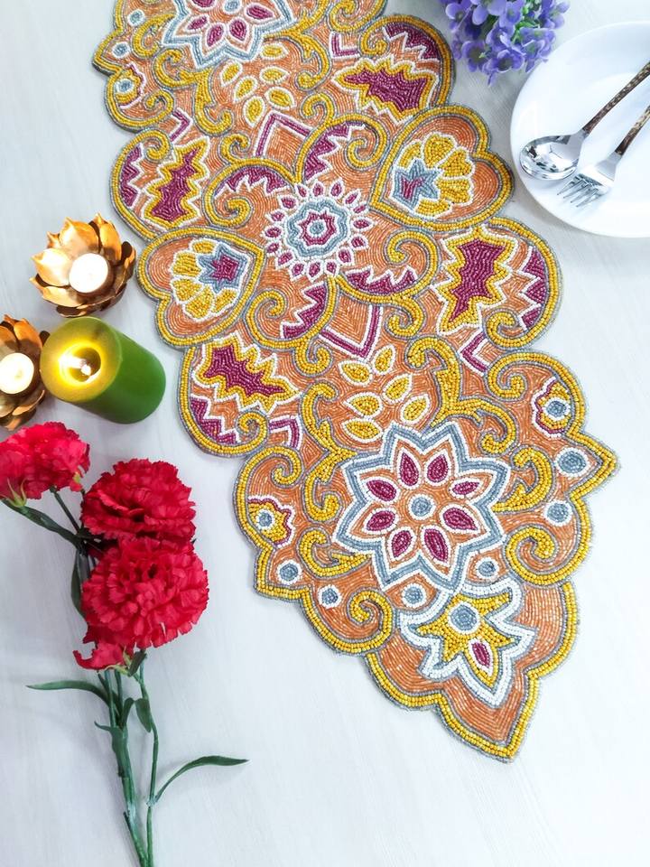 Camino de mesa con cuentas hecho a mano naranja