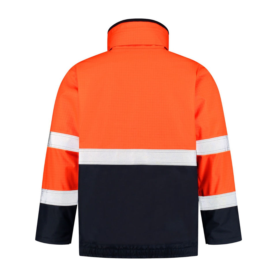 Chaqueta de seguridad reflectante de poliéster naranja de alta visibilidad con logotipo personalizado, ropa de trabajo con cremallera, chaqueta fluorescente de alta visibilidad estilo bomber