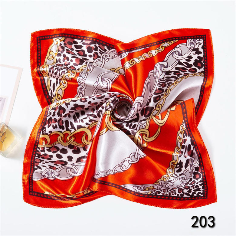 Pañuelo Cuadrado de Satén con Estampado de Leopardo Naranja y Cadena Dorada, Decoración para Bolsos y Accesorios para la Cabeza para Mujer 203