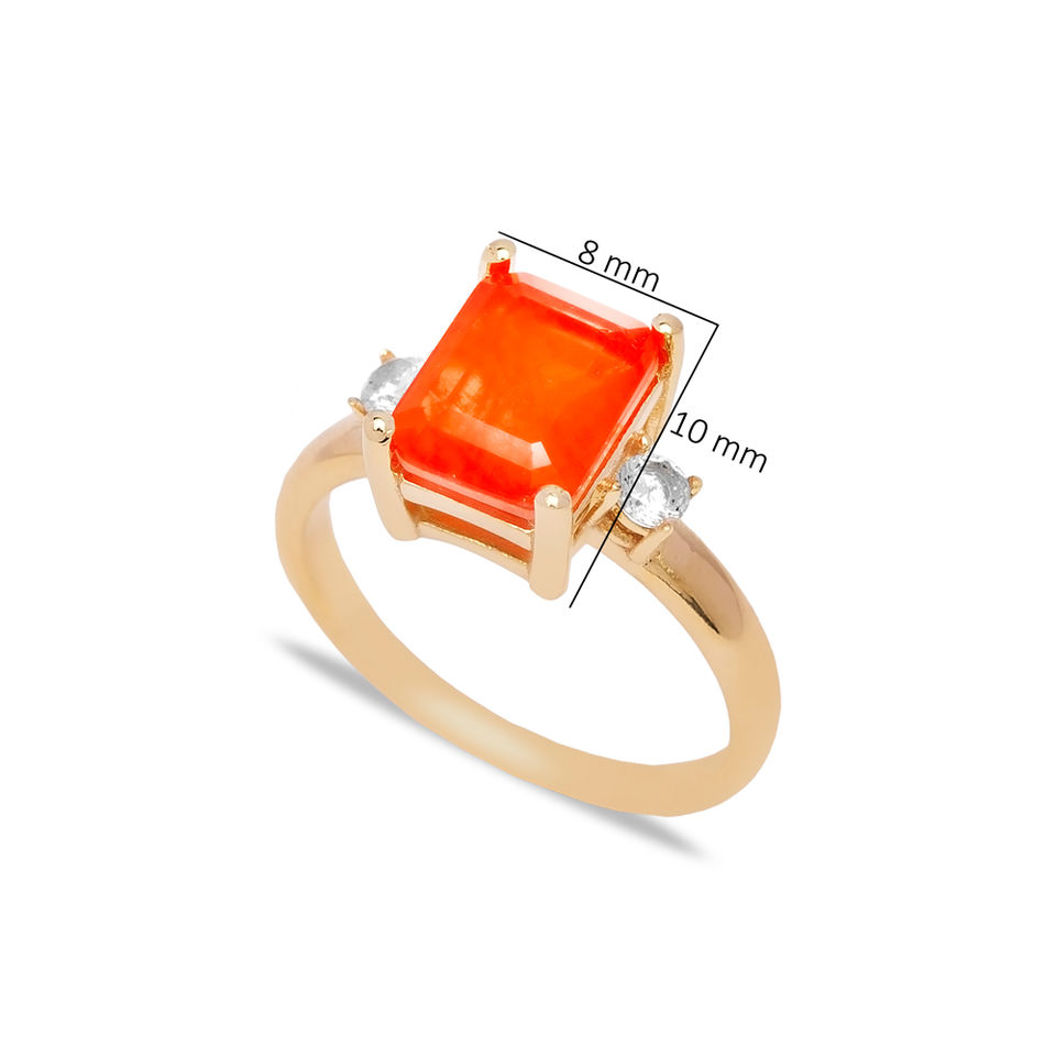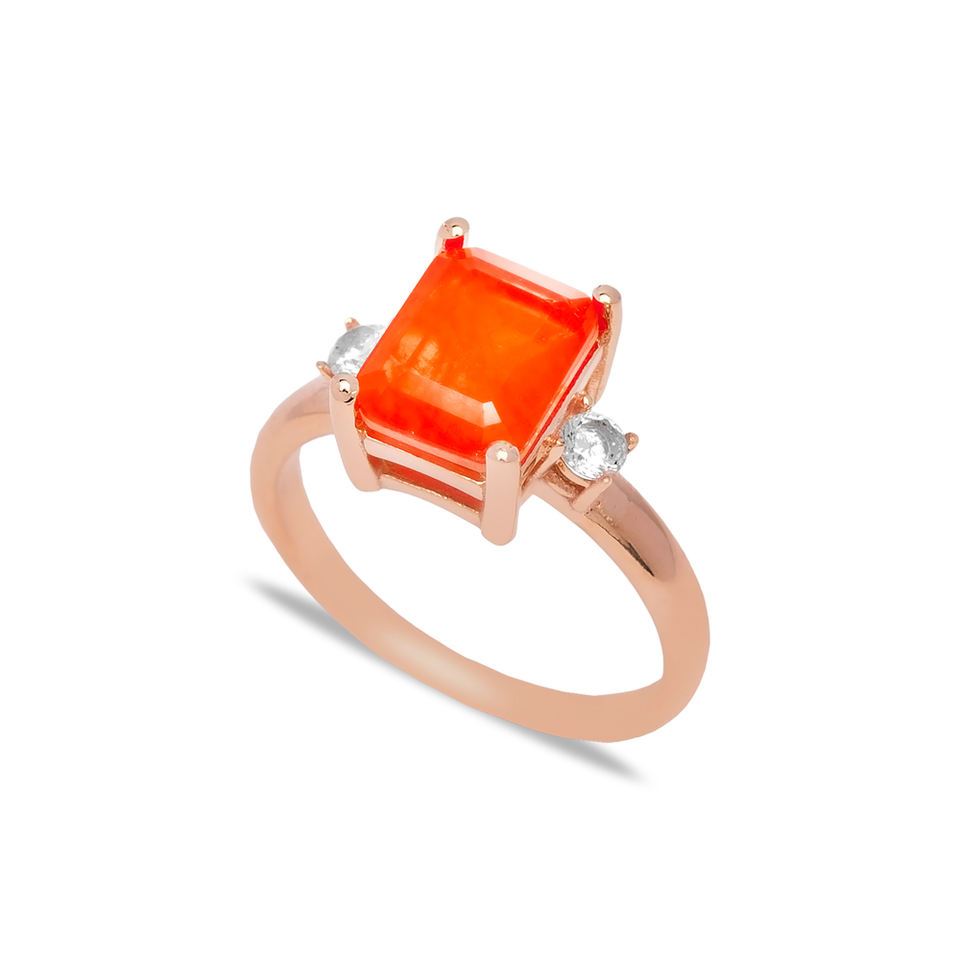 Anillo de diseño rectangular de piedra Natural naranja turco hecho a mano al por mayor joyería de plata de ley 925