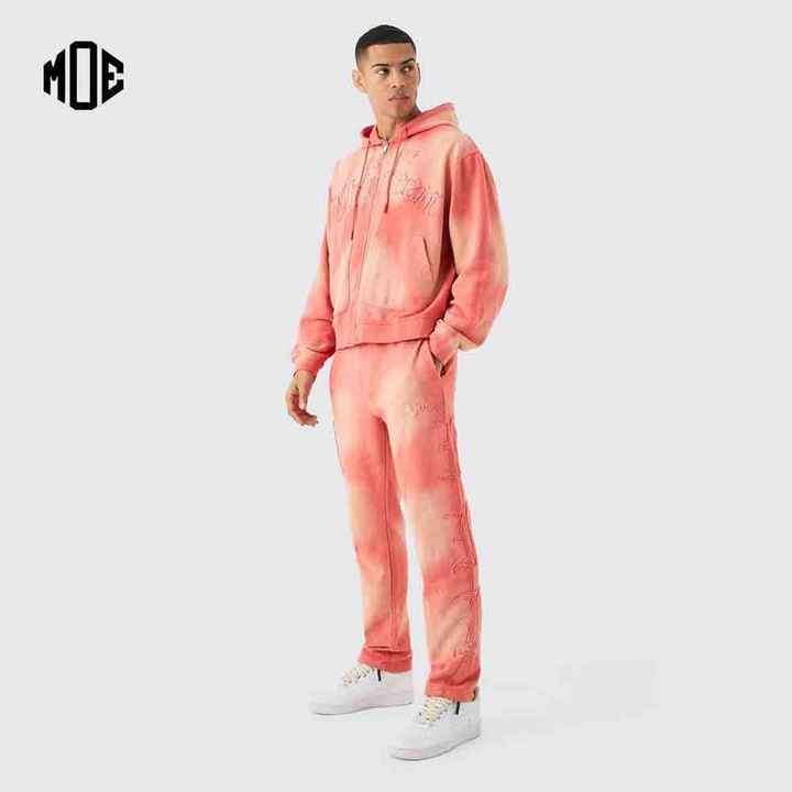 Sudadera con capucha y pantalones de chándal con cremallera y logotipo personalizado naranja de gran tamaño con bordado desgastado