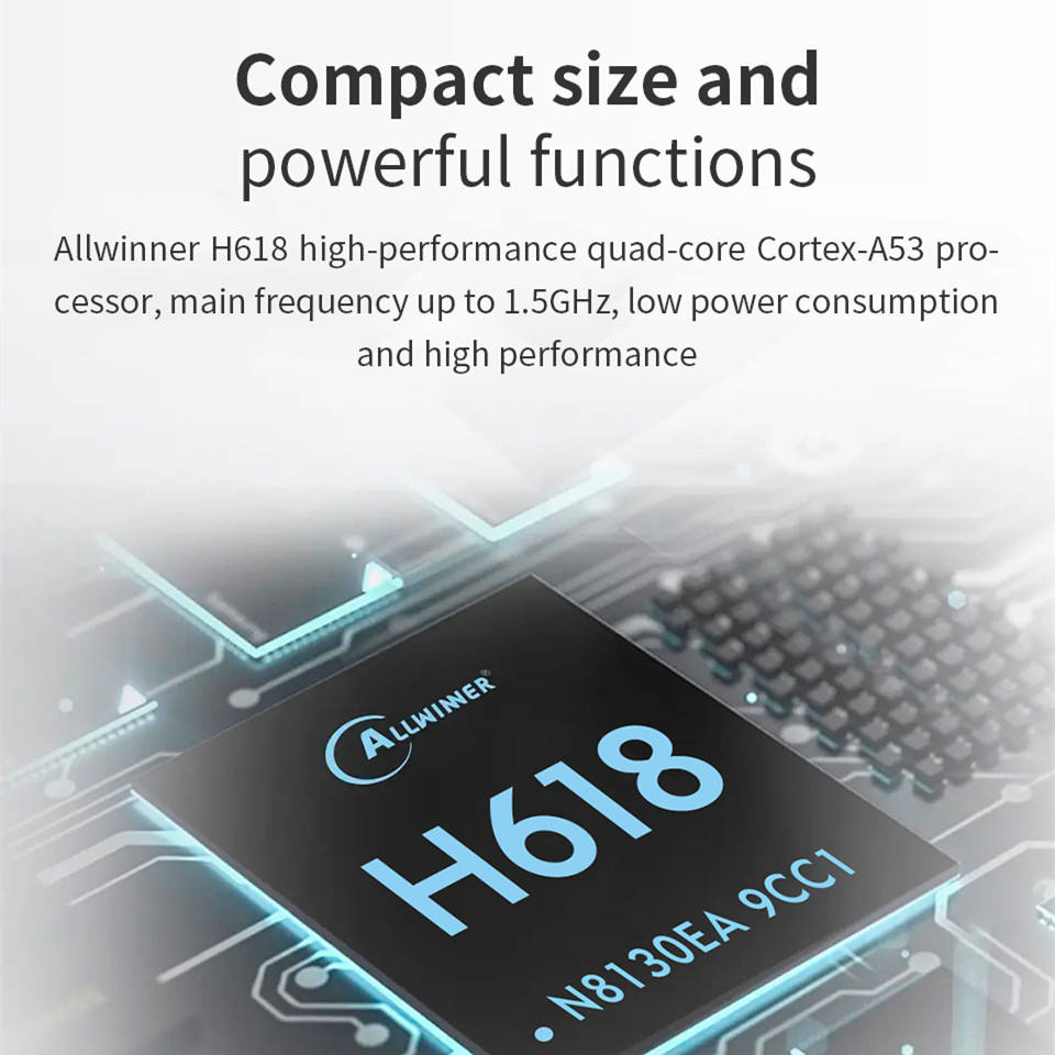 procesador:Allwinner H618 4*Cortex-A53 1.5 GHz