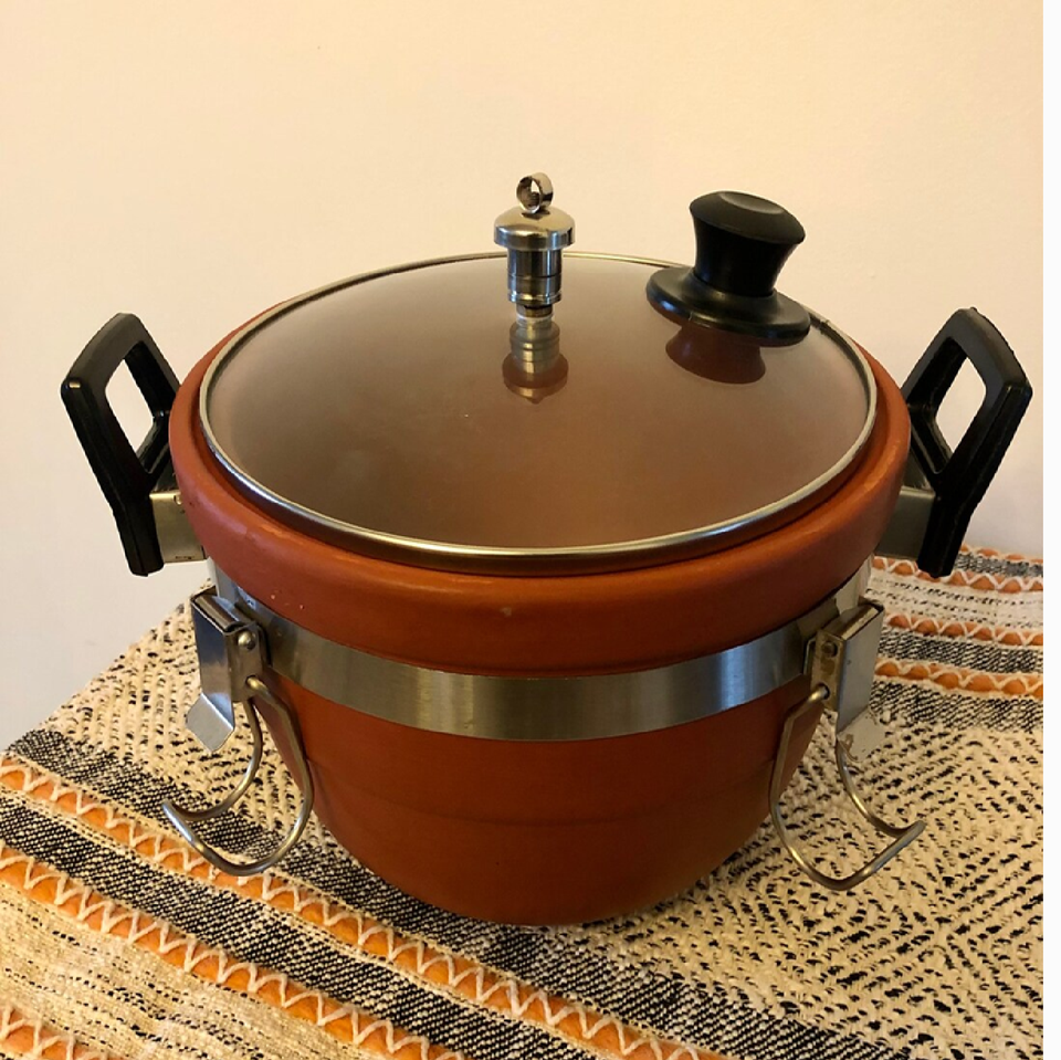 Olla a presión de terracota naranja con mecanismo de bloqueo único y tapa de vidrio-Olla de arcilla distintiva para cocinar suavemente