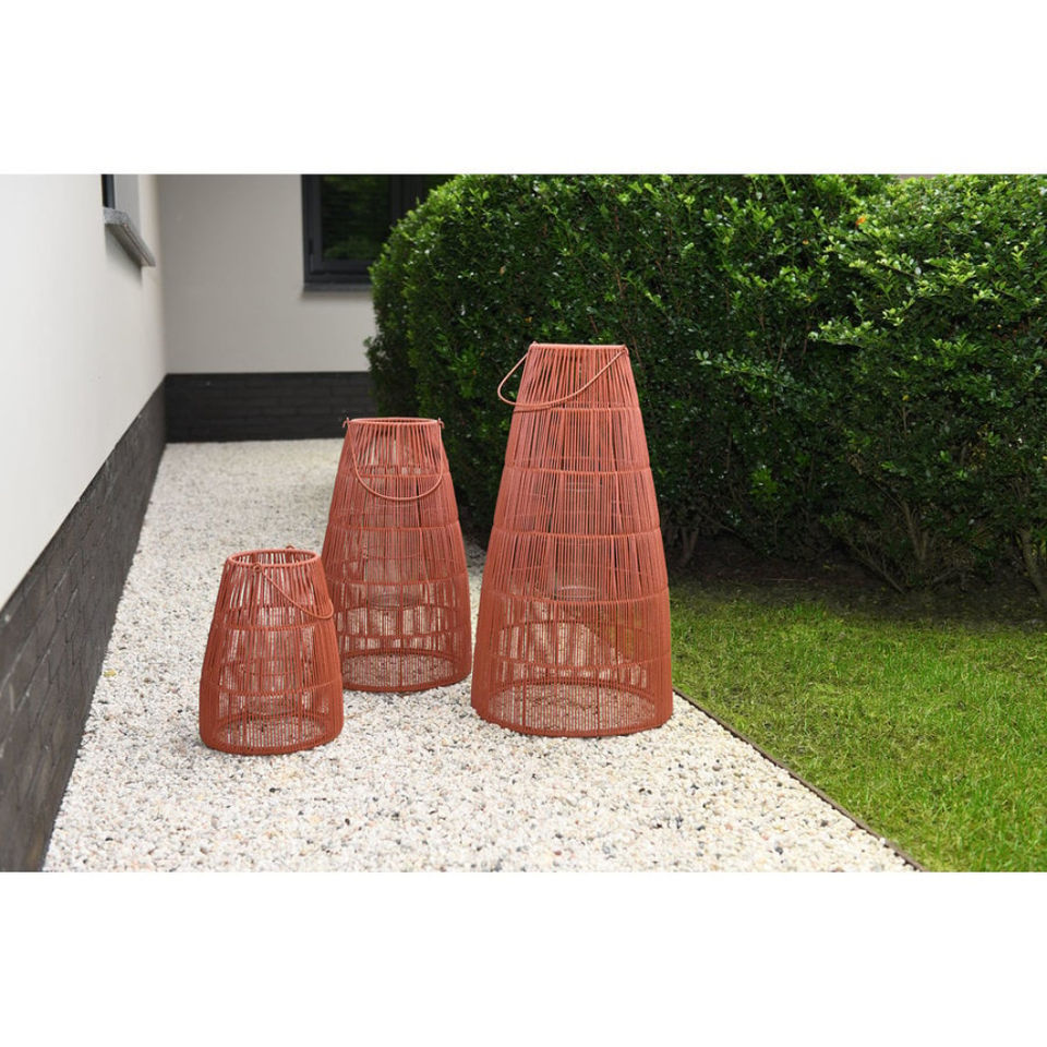 Linterna de mimbre naranja con mango Portavelas decorativo alto para uso en interiores y exteriores Acento de iluminación rústico elegante para jardín