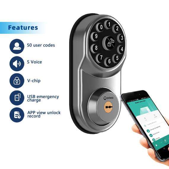 Cerradura de pestillo único digital inteligente superventas de fábrica Orbita para uso doméstico Airbnb Oficina con función de código y aplicación