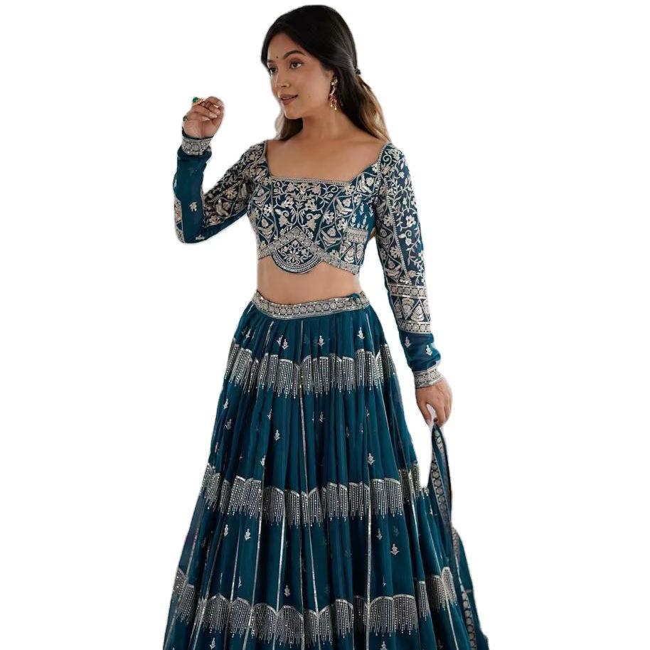 Elegante Lehenga Choli de Fiesta con Piel Sintética, Color Precioso, Fácil de Vestir en Un Minuto, Venta al por Mayor, Ropa Étnica para Mujer