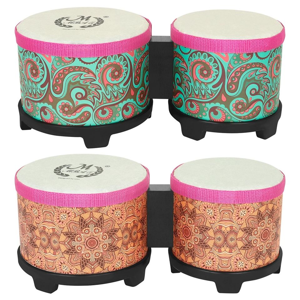 Instrumento de percusión Orff, tambor bongo unido de 5 y 6 pulgadas, tambor africano de piel de cabra para acompañamiento y presentaciones.
