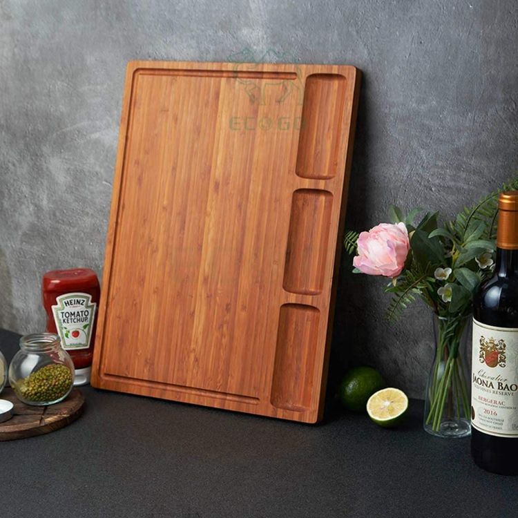 Tabla de cortar de bambú orgánico Tabla de cortar grande Tabla de cortar grabada a prueba de agua Bloque de cortar de 3 departamentos