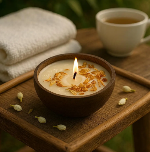 Vela de cáscara de coco orgánica hecha a mano jazmín perfumado vela de cera de soja Idea de regalo vela aromática para decoración del hogar de Vietnam