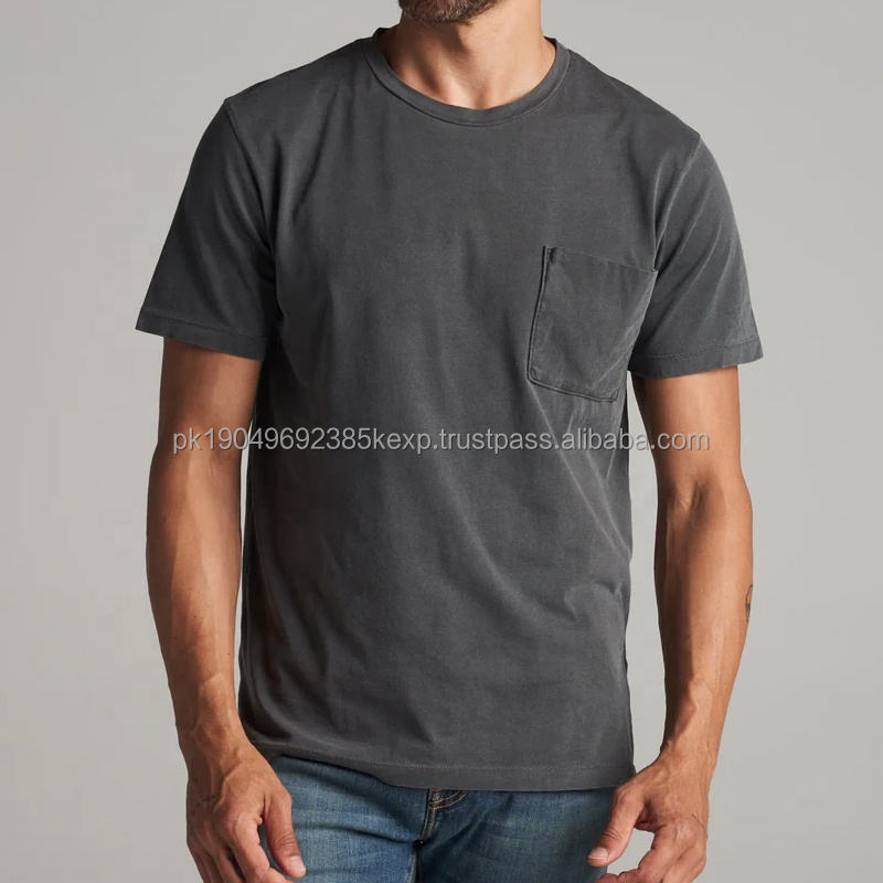Camiseta de Manga Corta de Algodón Orgánico para Hombre, Cuello Redondo, Camisetas con Bolsillo para Hombre, Camiseta Personalizada, Tela Extra Grande para Hombre