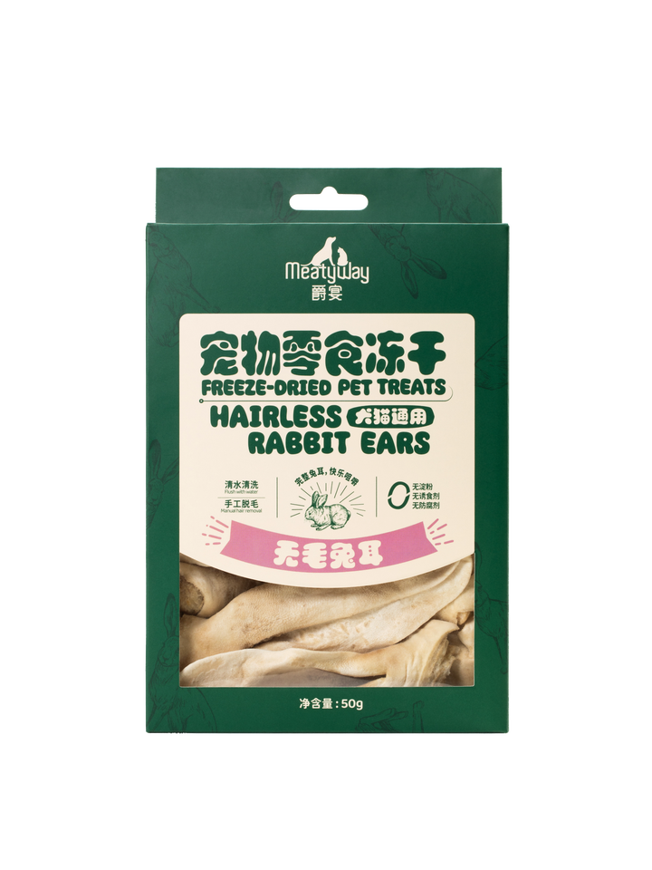 Snack orgánico liofilizado para masticar Orejas de conejo para perros, rico en proteínas, con sabor a Conejo, suplemento alimenticio seguro y saludable para mascotas