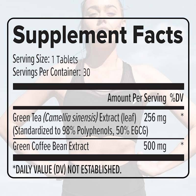 Tabletas de Extracto de Té Verde Orgánico, Suplemento Herbal con Cafeína de Granos de Café Verde, Quemador de Grasa Natural, 30 Tabletas