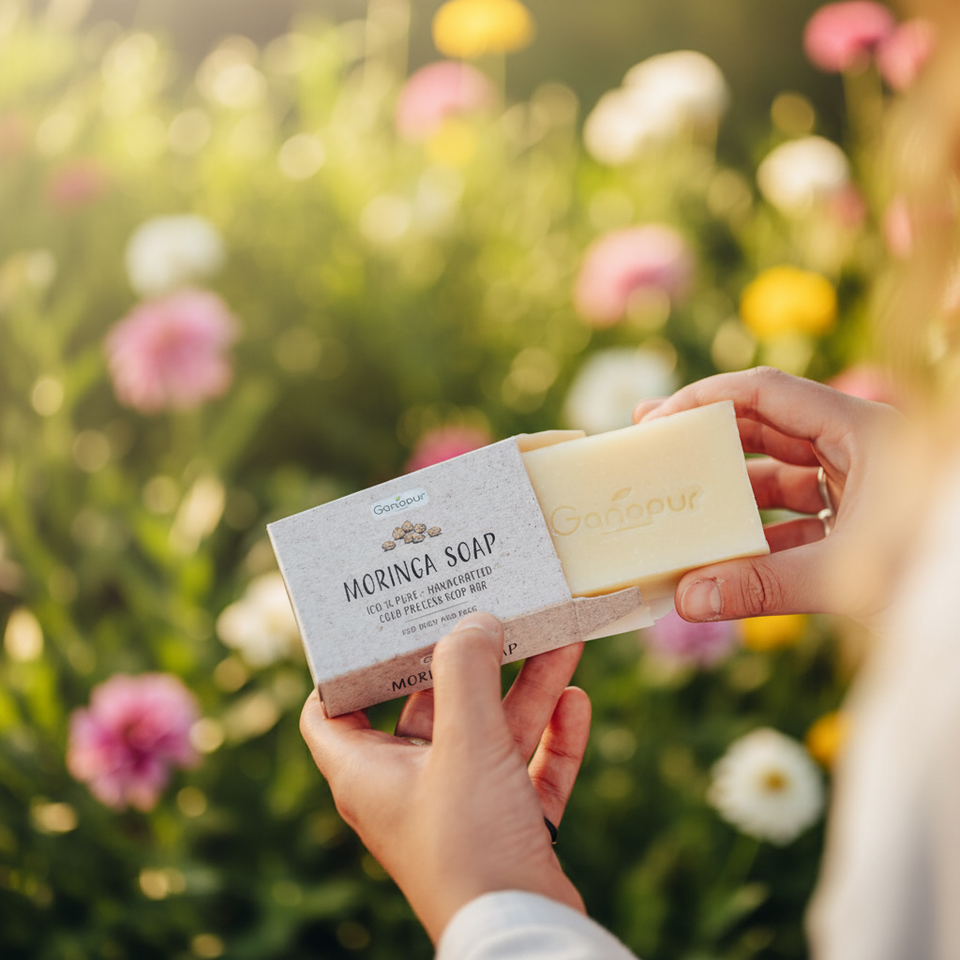 Jabón de Moringa Orgánico Hecho a Mano y Transparente, 3 Años de Duración, Limpiador Facial Suave para Todo Tipo de Piel, Origen Burundi, 100g Sólido