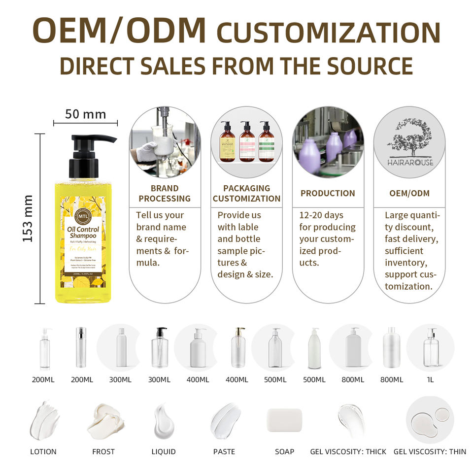 Champú Orgánico Reparador de Marca Privada para Control de Grasa, Limpieza Profunda, Hidratación y Volumen para Cabello Graso