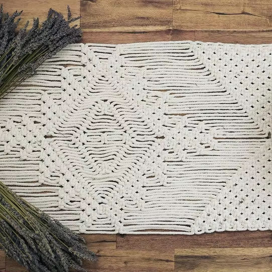 Camino de mesa de macramé de algodón orgánico con nudos artesanales perfecto para bodas y eventos de temática natural