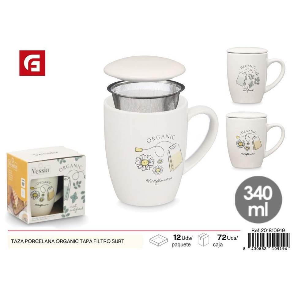 Taza de porcelana orgánica con tapa y filtro surtido-Cerámica y vajilla