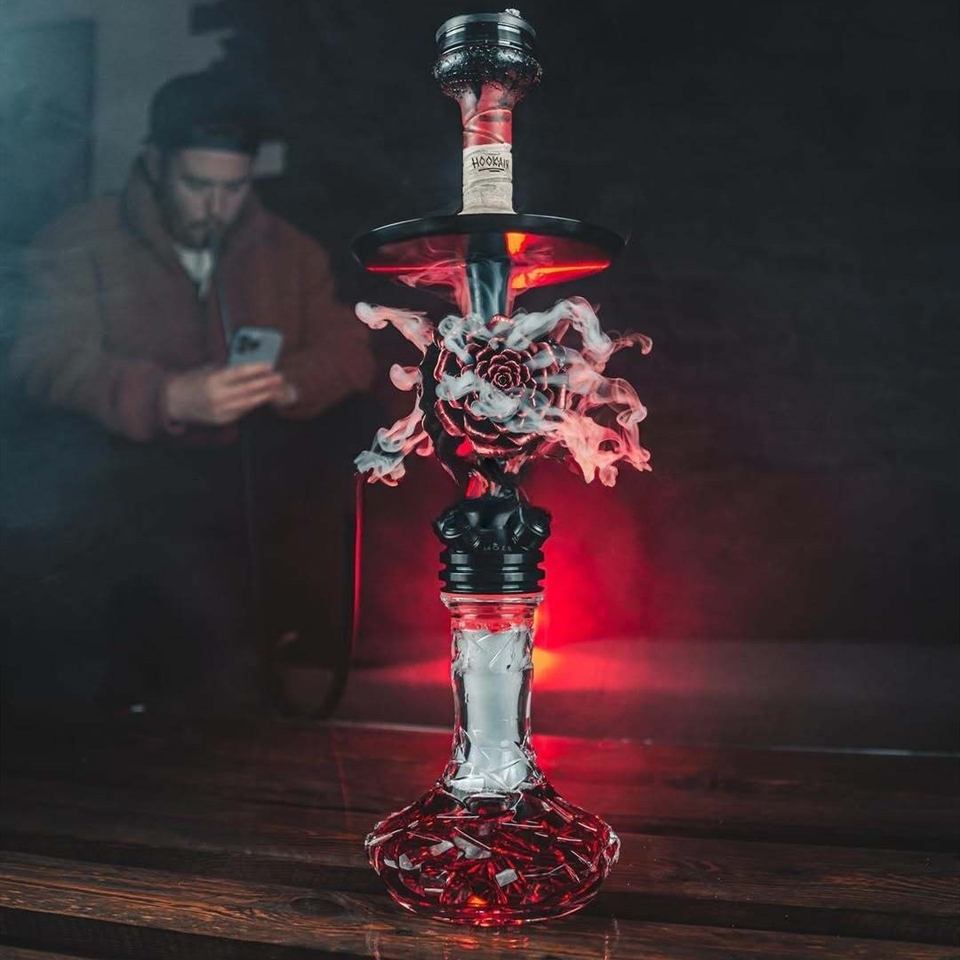 Accesorios:Tallos de cachimba, bandejas de tabaco, botellas de vidrio, asas, mangueras