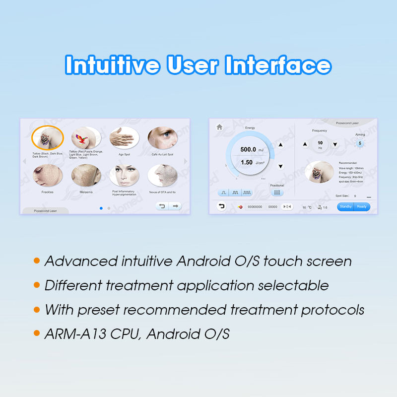 Tratamiento del acné, Eliminación de varices, levantamiento facial, Eliminación de pigmentos, Correctores de pigmentación, Eliminador de Poros, Rejuvenecimiento de la piel, Estiramiento de la piel, Eliminación de tatuajes, Blanqueador, Quita arrugas, Spot Edad, Cafetería cercanos Cafe Au Lait Spot, Pecas, Melasma, Hiperpigmentación postinflamatoria, Nevus de OTA e Ito, Resurfacing DE LA PIEL, Shillus NevusCaracterística