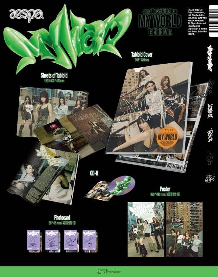 Paquete de Audio Original EP K-POP aespa 3er Mini Álbum [MY WORLD] Versión Tabloid CD Foto Coleccionable de Alta Calidad en Stock