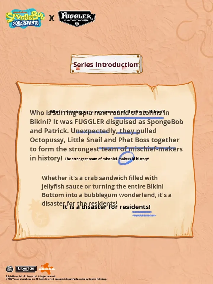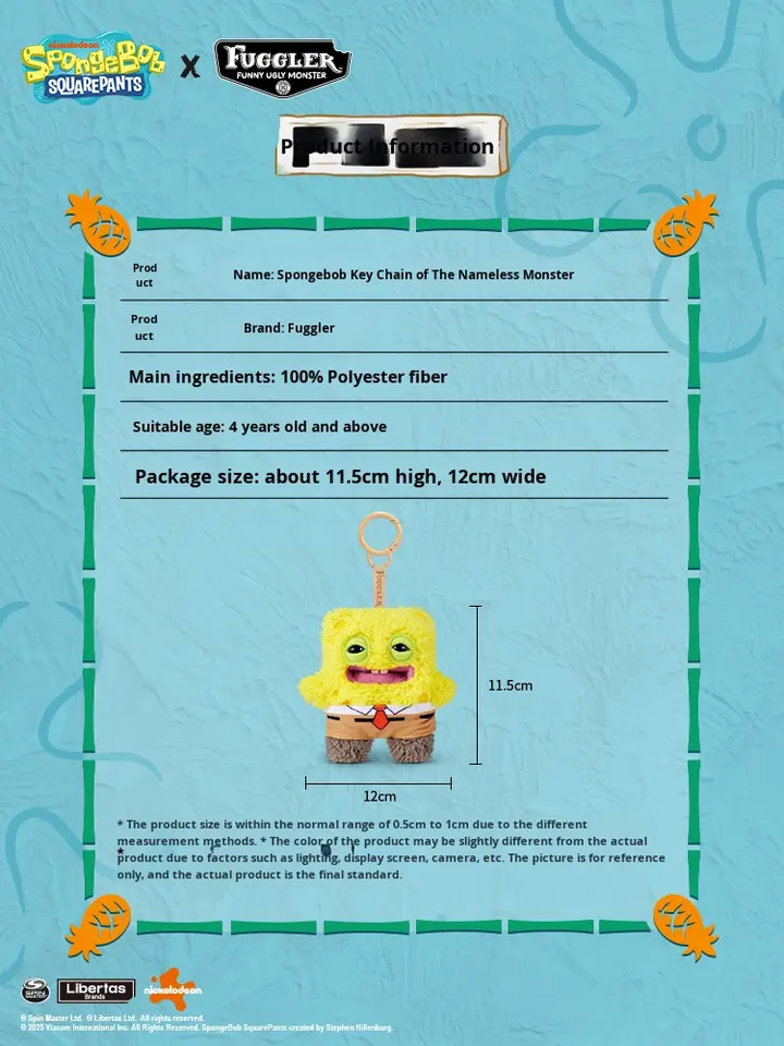 Auténtico Original para la Colaboración de Tooth Monster y Sponge SquarePants, Peluche Feo y Adorable, Llavero, Juguete de Moda, Caja Sorpresa, 14 Años
