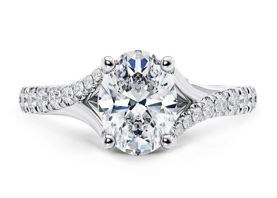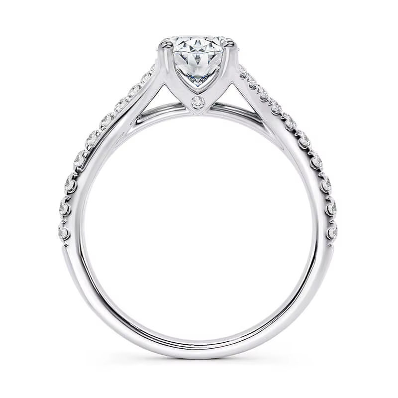 Anillo de piedra múltiple de diamante cultivado en laboratorio de corte ovalado original brillante de 1,5 quilates-exquisito de oro blanco 18 quilates