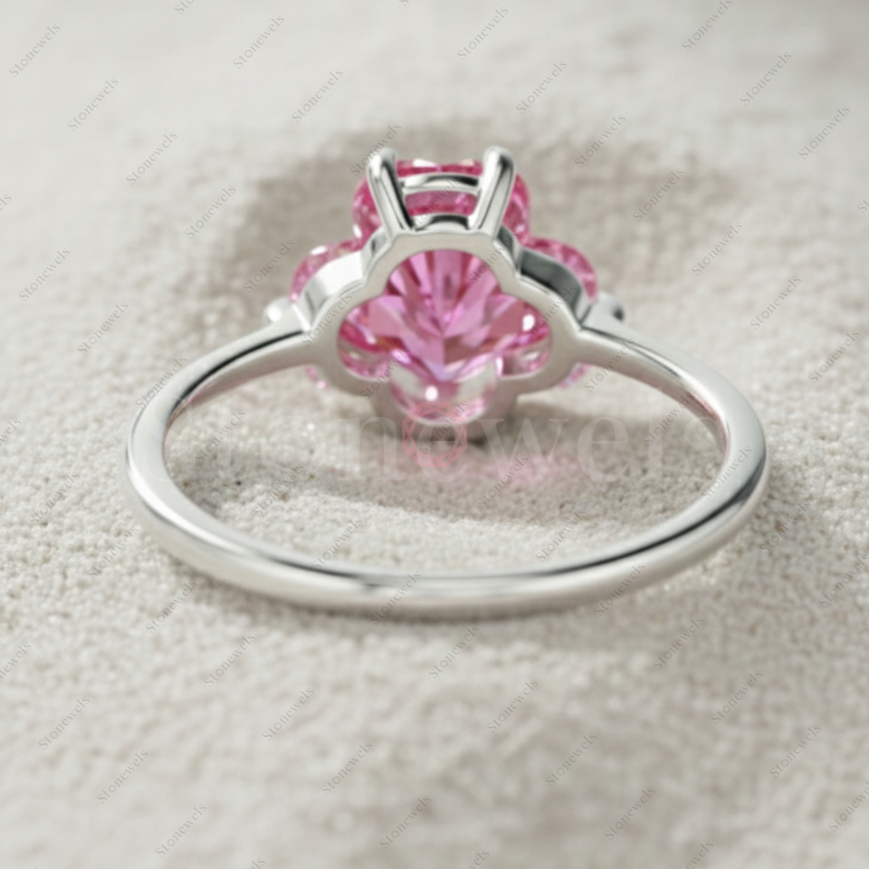 Nombre del producto:Anillo de diamante de laboratorio sólido con forma de trébol rosa elegante