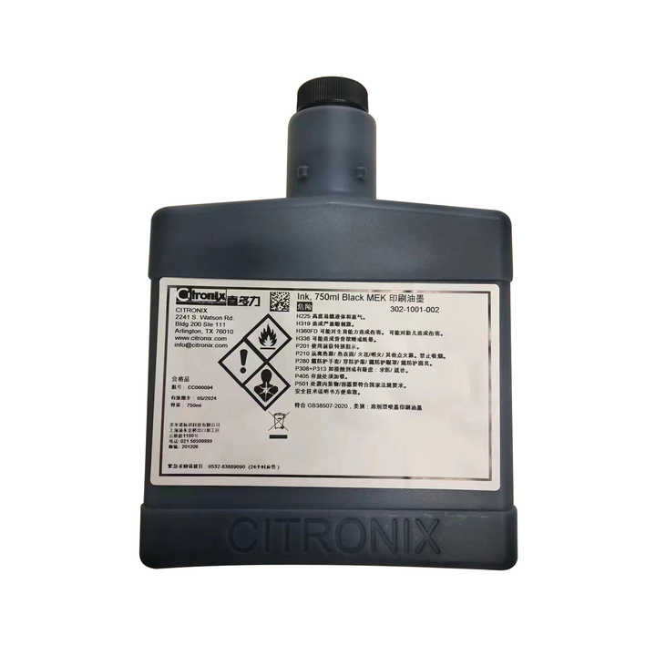 Tinta Negra Original/Compatible Citronix MEK de 750 ml con Chip Tag Frid 302-1001-002 302-1006-004 302-1002-001 302-1010-00