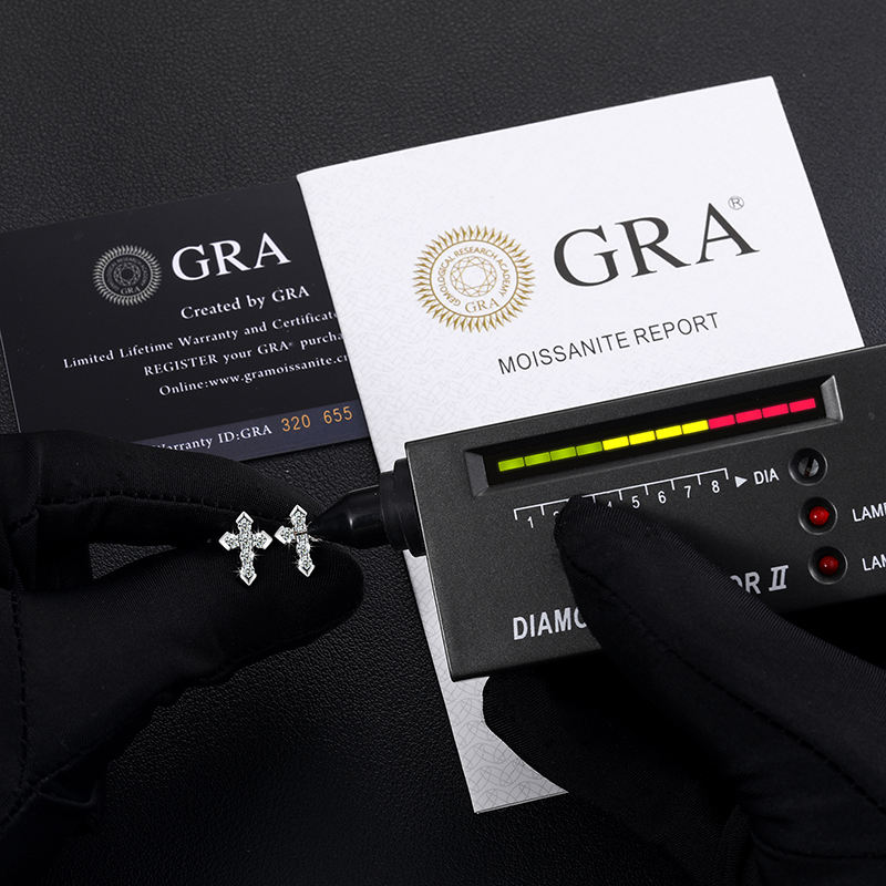 Joyería religiosa de diseño Original para hombres y mujeres, pendientes de tuerca con Cruz de moissanita VVS de Plata de Ley 925