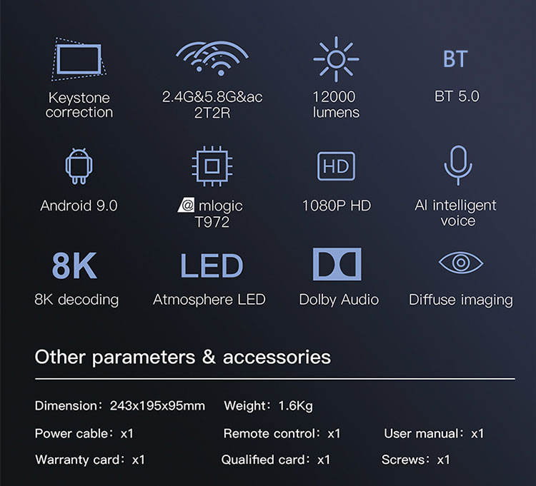 Distancia de Proyección:1,8-6,6 M (Imagen de 35 pulgadas-200 pulgadas)