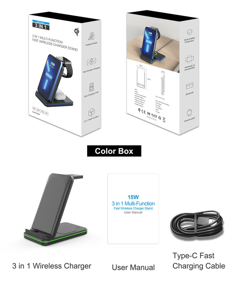 Cargador inalámbrico, 3 en 1 Inalámbrico de la estación de carga, Cargador de escritorio, Fast charger
