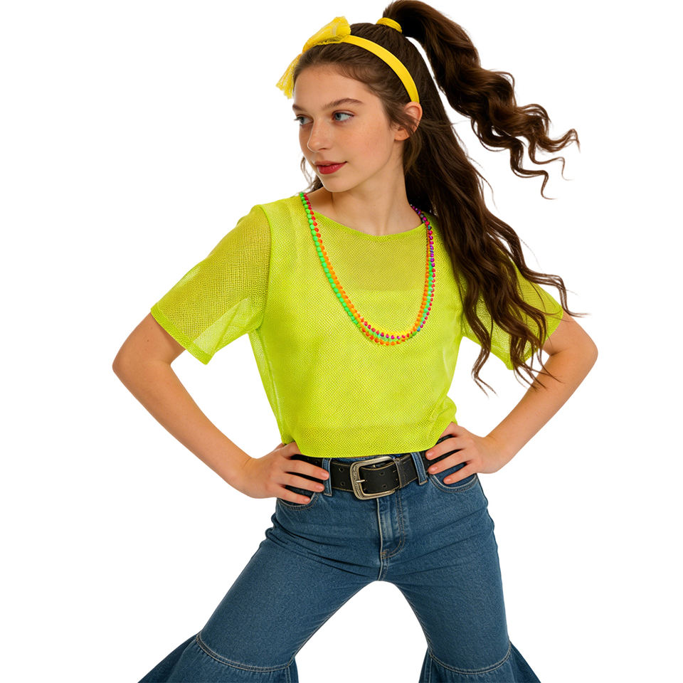 Nombre del producto:Camiseta Estilo Años 80 con Malla Neón - Disfraz Retro