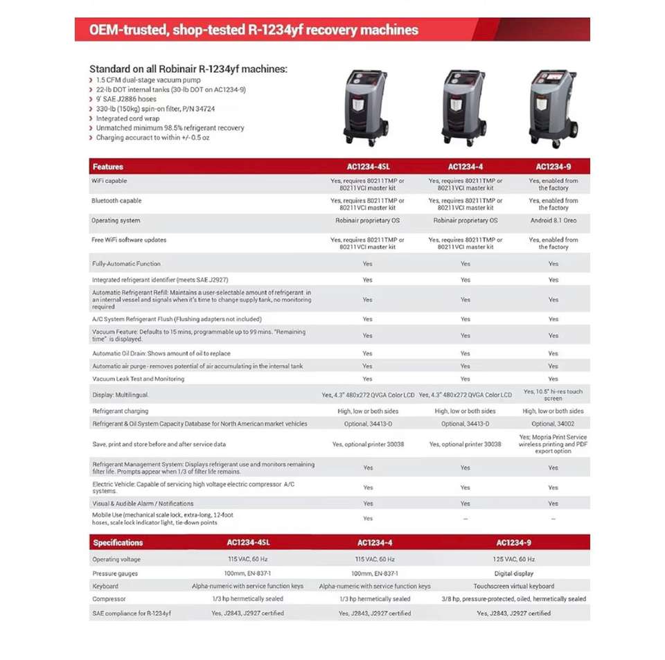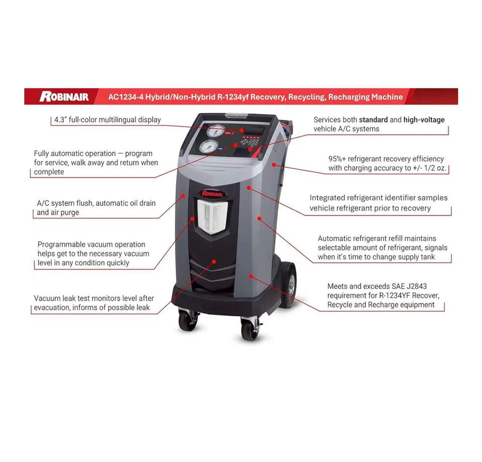 Máquina de Recuperación, Reciclaje y Recarga de Refrigerante R-1234yf Original de Fábrica Robinair-AC1234-4-Premier para Sistemas de Aire Acondicionado Estándar y de Alto Voltaje