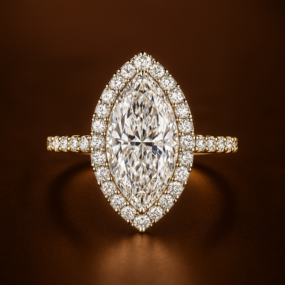 Anillo de Compromiso Elegante de Oro de 14K con Diamante Corte Marquesa VVS, Joyería de Moda Original para Mujer