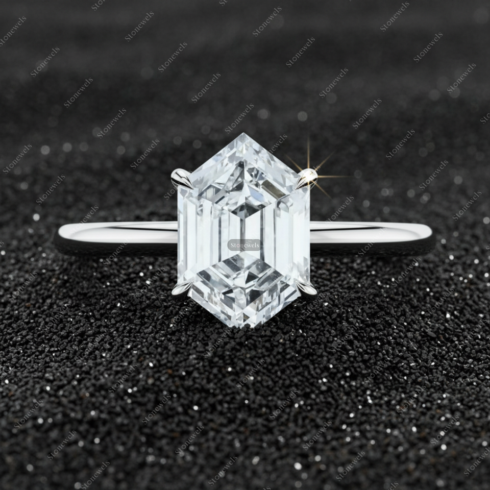 Product name:Solid Lab Grown Hexagon Shape Diamond Ring