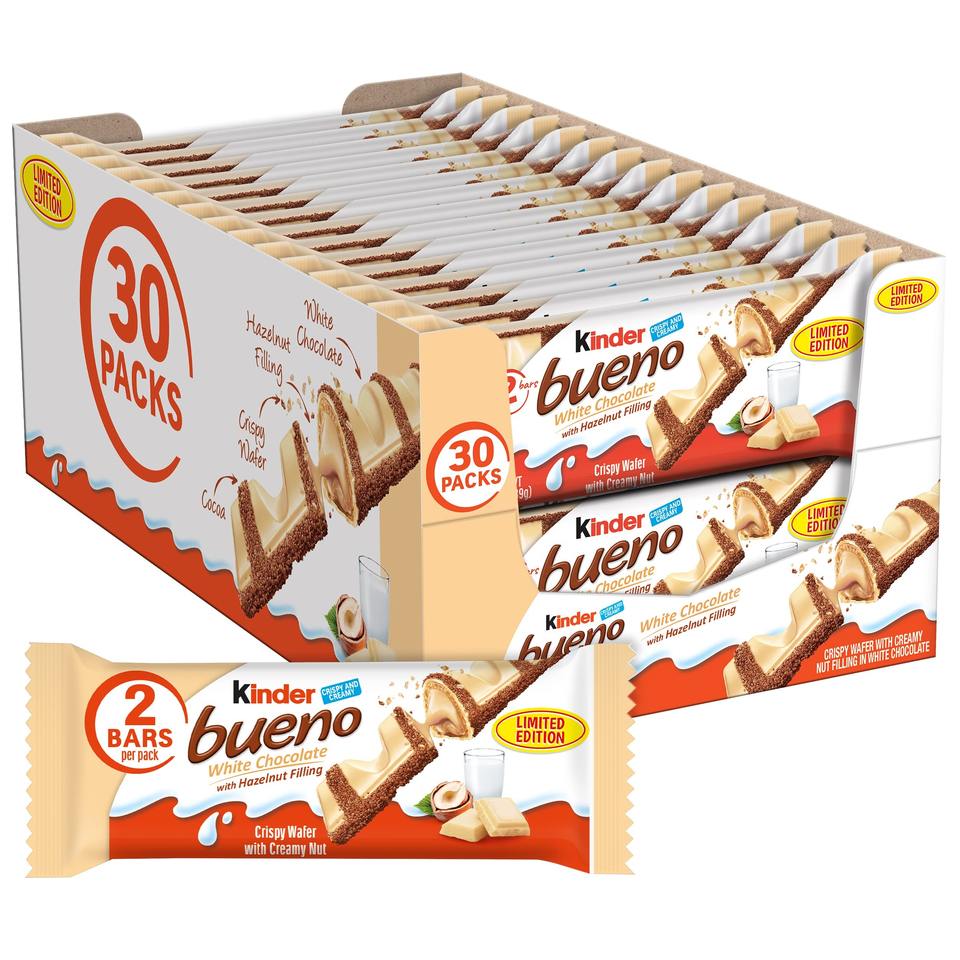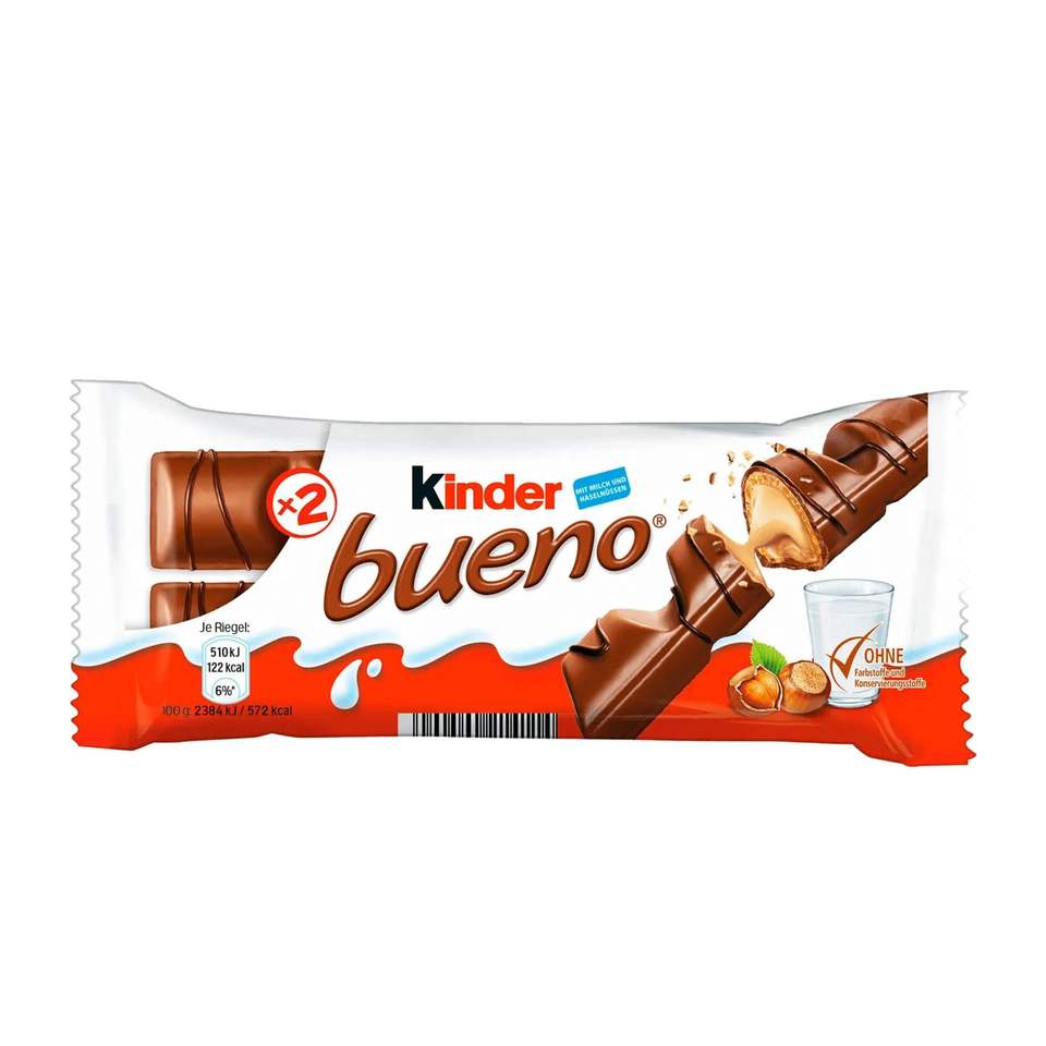 Barras de chocolate originales Kinder Bueno con relleno de avellana cremosa en cáscaras de oblea crujientes para distribuidores supermercados