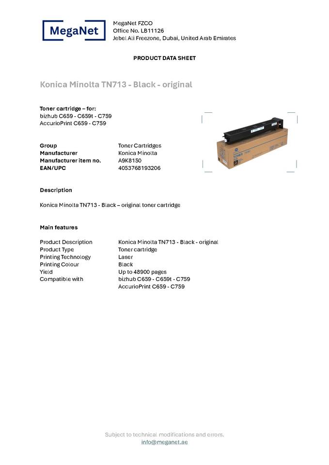 Tóner Original Konica Minolta TN713K - A9K8150 al por Mayor
