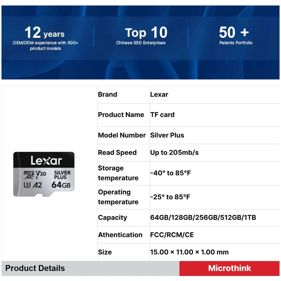 número de modelo:Tarjeta Lexar Professional Micro TF SD