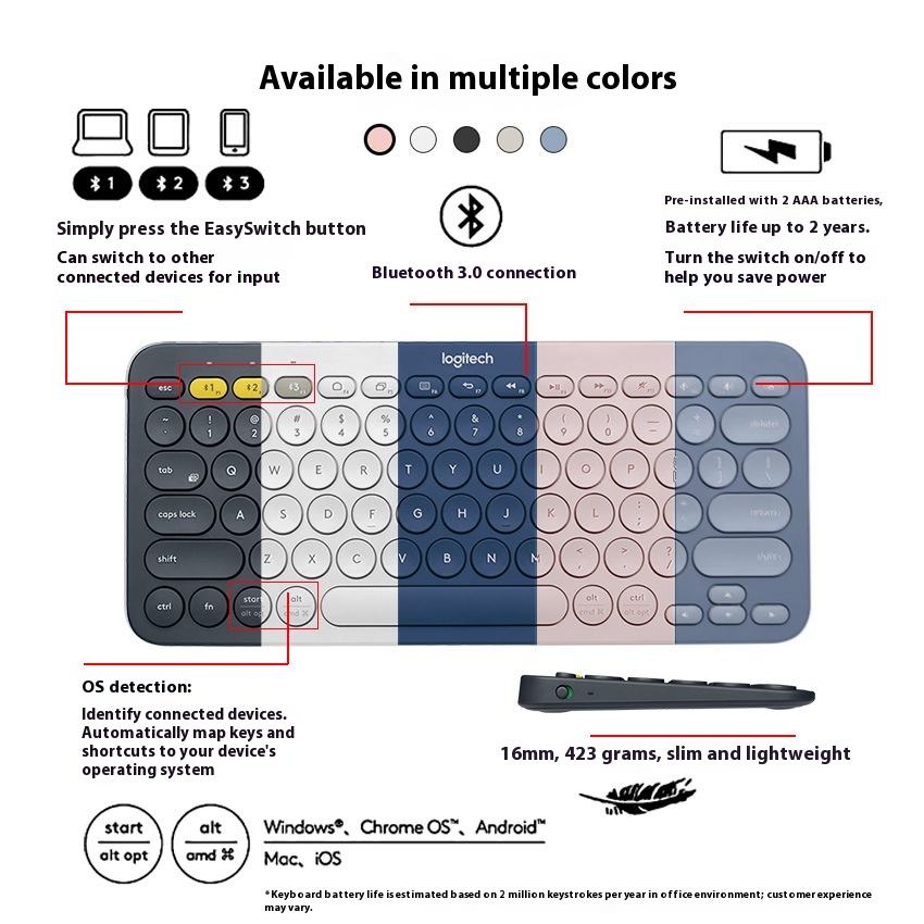 Teclado Bluetooth original Logitech K380 multidispositivo para MAC, teclado sencillo para ordenadores MacOS, IPad y iPhone