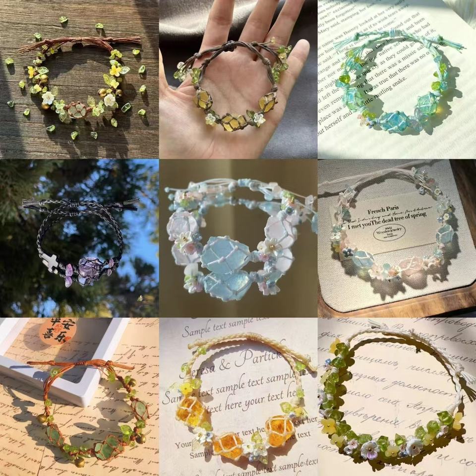 Colección Original de corona de cristal sintético de macramé, bolsa de malla tejida pura hecha a mano, pulsera tallada, regalo para novias